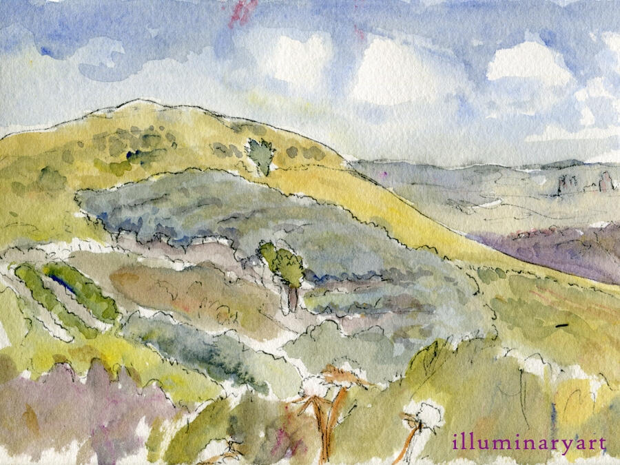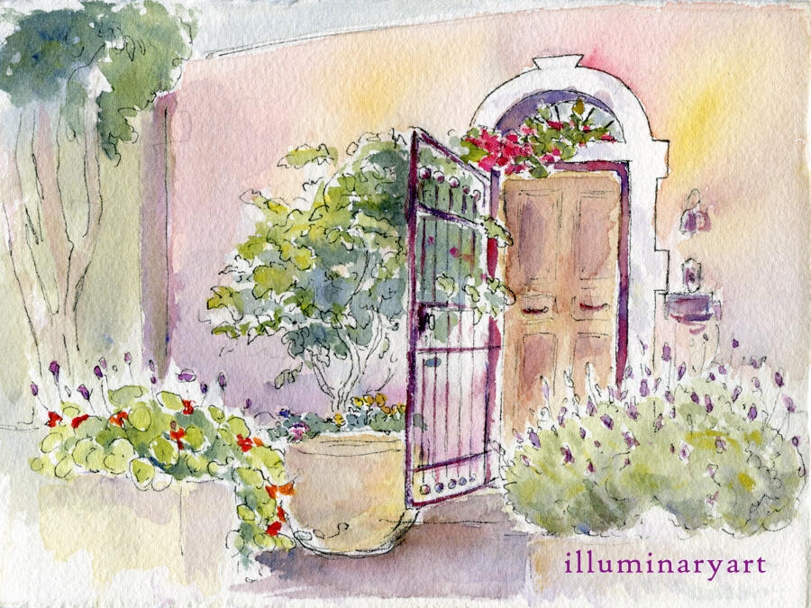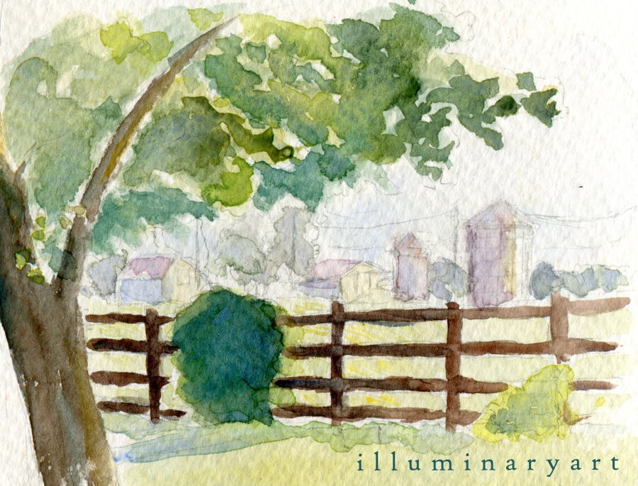 A loose watercolor sketch with minimal shading or colors. May have pencil or pen linework. Will not do preliminary sketches.